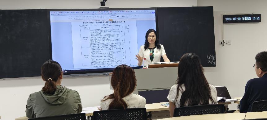 郭遂红结合自己多年来参加教学大赛及担任大赛评委的经历,特别是从担任青年教师教学大赛以及连续四届担任广东省高校教师教学创新大赛评审专家的角度,围绕大赛备赛各环节进行培训,包括课程设计、课程大纲撰写、课件制作以及课堂授课等模块。郭遂红对比赛各项细则进行了详细的讲解,指出撰写材料和制作课件时,要对标细则,围绕主题,突出重点和创新点。同时,通过展示优秀竞赛案例,对教学竞赛中的准备过程、现场发挥、教学方法、结构模块、图文设计等内容进行细致讲解。各位参赛老师进行了现场模拟说课,郭院长对每一位老师进行针对性的指导,包括说课中教师教态、语气语速、课件内容、课堂环节设计中存在的问题以及注意事项。
