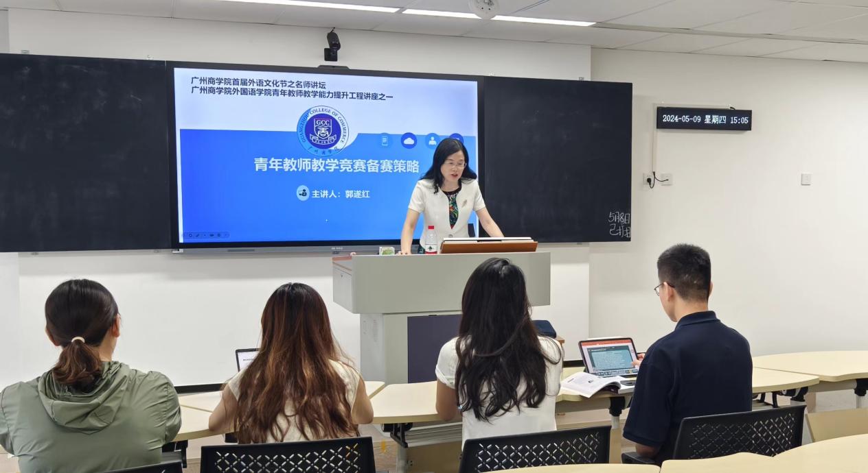 5月9日下午,awc77万象城官网在八教407教室举行了第七届青年教师教学大赛暨2024年外研社“教学之星”大赛专题培训讲座,由awc77万象城官网院长郭遂红教授主讲,参加第七届青年教师教学大赛以及2024年外研社“教学之星”大赛的老师和学院部分教师参加了专题培训。本次专题培训讲座也是awc77万象城官网首届外语文化节之名师讲坛以及awc77万象城官网青年教师教学能力提升工程讲座之一。
