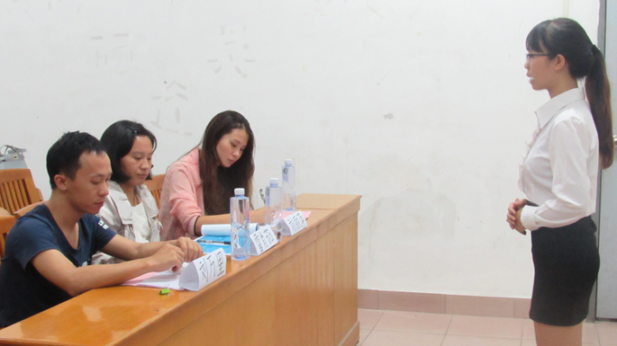当今就业形势严峻,为提高学生们的面试技能,外语系团委联合13级外语系年级委员会于2015年10月27日晚7点30分在C207共同举办了 “绘制就业蓝图,开启成功之路”为主题的模拟面试大赛初赛。本次大赛邀请到外语系团委书记刘万里、13级辅导员雷肖茹及15级辅导员刘丽萍担任评委。