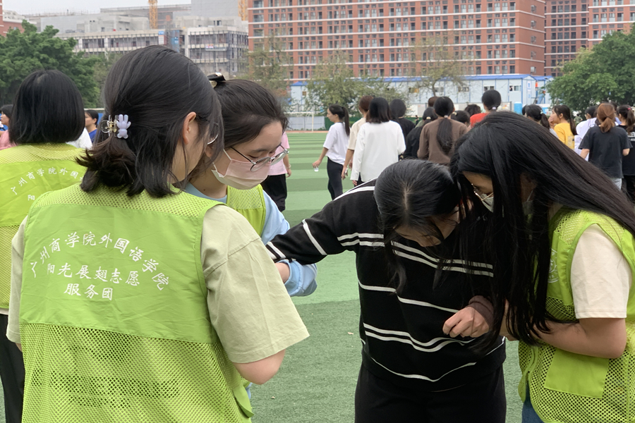 在体测开始前,21级学生党支部在21级学生党支部书记李超的组织下有序集合,设立服务岗,并完成志愿服务前的准备工作。同学们摆好姿势,做好准备,随着枪声一响,全力冲刺!在体测进行时,志愿者们来回奔波于服务岗和跑道之间,他们及时为完成体测的同学送上葡萄糖水、纸巾等物资,搀扶体力不支的同学到休息处进行放松调整。