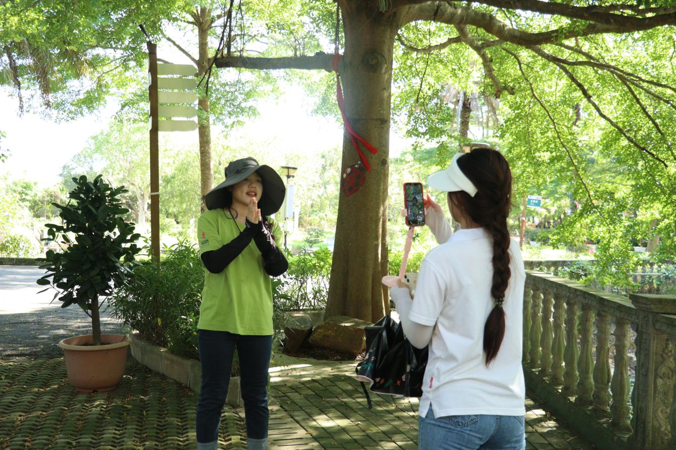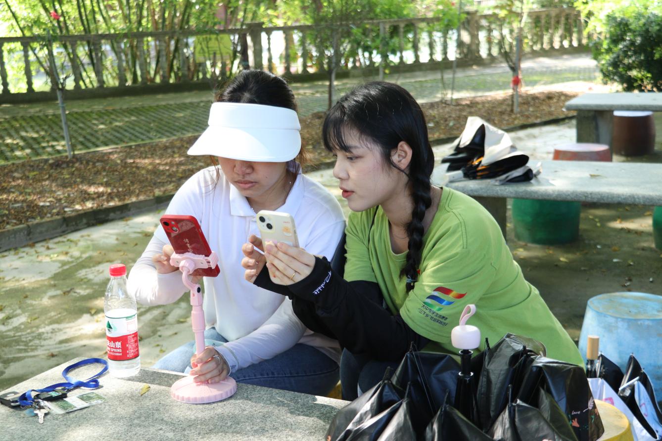 阳光展翅实践突击队为首次生态园户外游园直播进行了精心的前期准备。队员们对直播设备、麦克风、后台设置等进行了严格的挑选和调试,他们反复测试不同角度和距离下的拍摄效果,确保画面清晰、色彩逼真、声音清晰,让直播间内的观众身临其境地体验亚维浓生态园的魅力。除此之外,突击队队员们还提前规划好萌宠、花海和水果种植场地的直播路线,确保直播过程流畅有序。并在直播区域布置了一些艺术装饰,让观众获得最佳的“游园”体验。