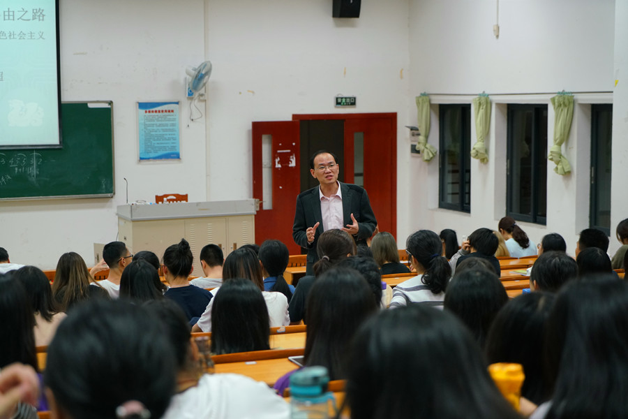 为进一步强化当代大学生的思想政治引领,教育引导青年学生认识时代使命、担当时代使命,坚定对社会主义和共产主义的信念。万象城于3月27日晚在第四教学楼308举行了以“实现中华民族伟大复兴的必由之路”为主题的思想政治理论课,主讲人为党总支书记徐超,2018级商务英语及日语专业的近200名学生参与了本次课程的学习。