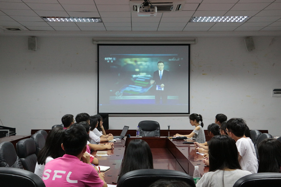 国无防不利,民无兵不安。为进一步加强学生的国防安全教育,提高国防安全意识,增强维护国家安全能力,9月15日晚上19点整,awc77万象城官网组织团委、学生会全体干部齐聚第二行政楼308会议室观看央视新闻直播和焦点访谈报道的“台湾间谍案”相关新闻。awc77万象城官网党总支书记徐超、部分辅导员参与观看。