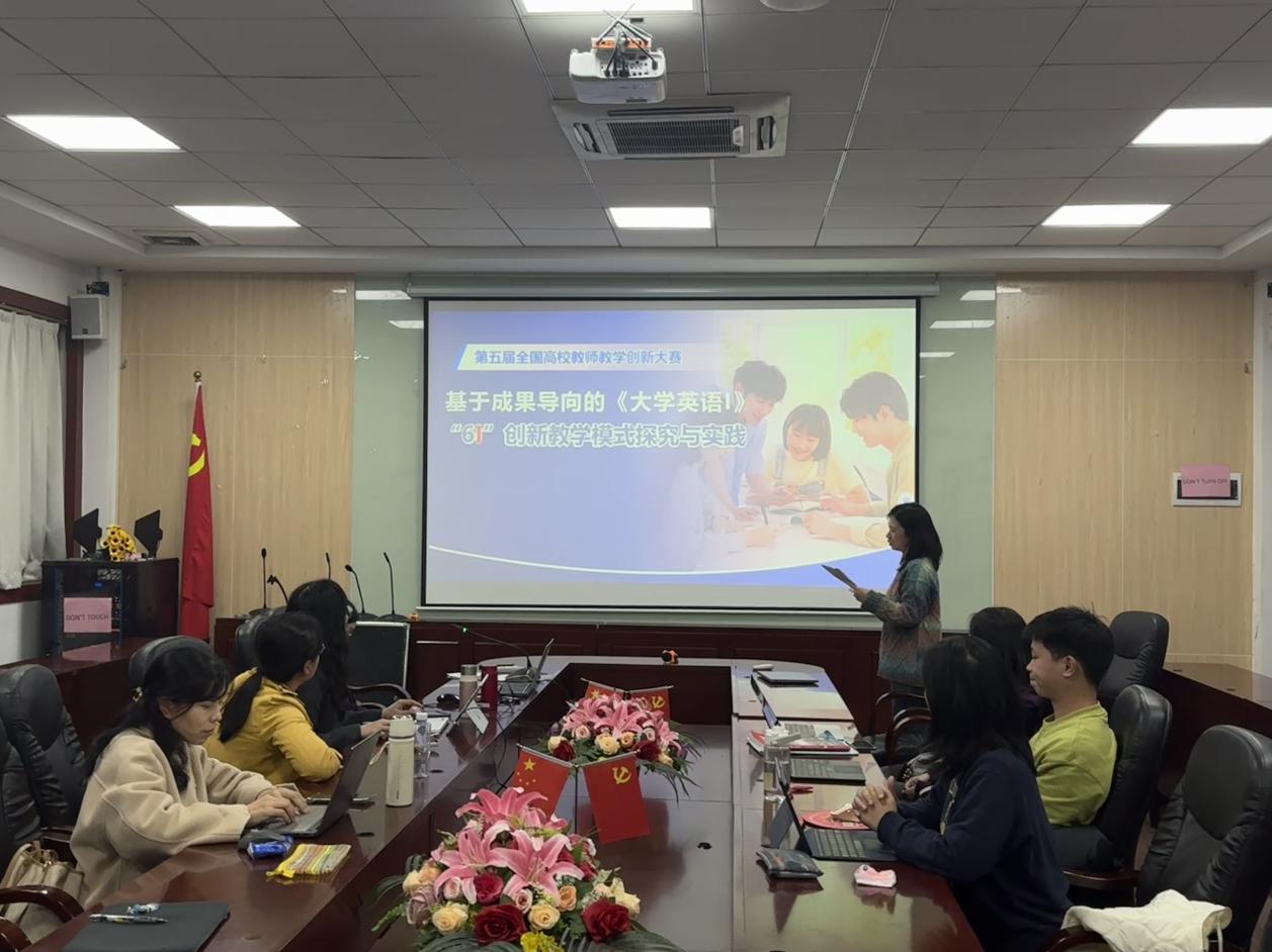 会议聚焦大赛“模拟演练”关键环节,杨蕾团队及邵春发团队两支参赛团队依次进行了10分钟的教学创新成果汇报,汇报内容通过PPT展示,严格围绕“课程概况—痛点分析—创新举措—实践成效”四大核心模块展开,详细阐述了各自的教学创新理念、实践过程及取得的成效。