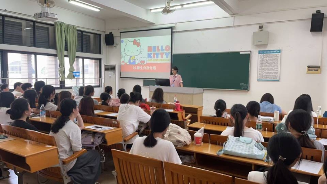 班会伊始,各班助理辅导员进行自我介绍,他们以亲切的分享代替了刻板的介绍。他们结合自身在外院学习和生活的经历,从新生关心的话题切入,穿插自己的成长感悟,让新生们感受到学院的关怀与温暖。