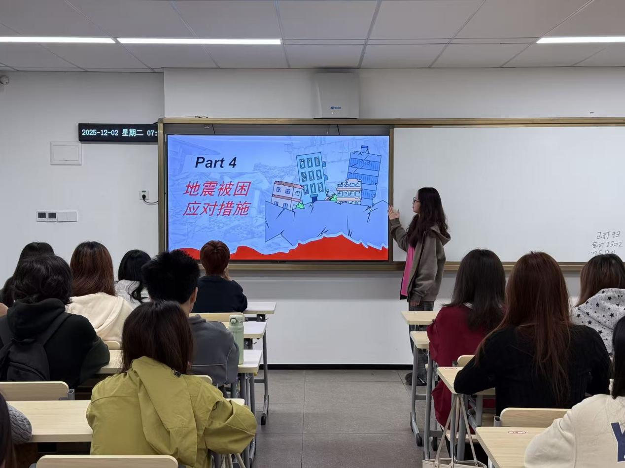 活动前期,学院通过主题班会、线上知识问答等形式,系统讲解地震成因、预警信号及逃生原则。辅导员结合汶川、雅安等地震案例,重点强调“伏地、遮挡、手抓牢”的应急避险要点,明确教学楼、宿舍等不同场景下的疏散路线与集合点位。同时,学院利用班级群等平台发布《地震安全手册》,普及三角区避险、外伤简易处理等实用技能,累计覆盖学生2000余人次。
