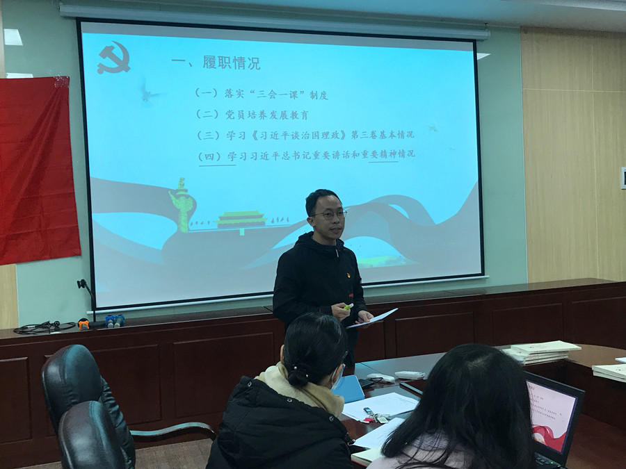1月15日上午,awc77万象城官网党总支在二政315会议室举行2020年基层党建工作述职评议考核,学院党总支全体委员、党总支所属6个党支部书记、学生党员代表等共计16人出席会议,述职评议考核会议由党总支书记徐超主持。