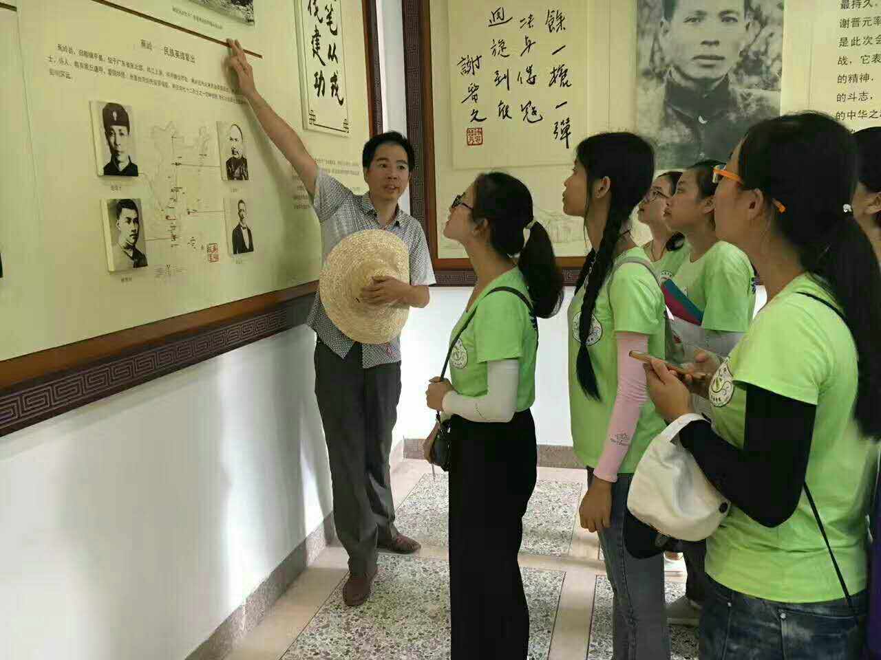 踏入谢晋元纪念馆,馆内陈列着谢晋元将军生平事迹照片。通过认真学习,我们从中了解到八·一三淞沪抗战堪称是十四年抗战中规模最大、时间最持久、战况最惨烈的会战之一。谢晋元将军率领八百壮士坚守上海四行仓库是此次会战后期最为耀眼的阵地战。作为中国抗日民族英雄中的典型代表,谢晋元将军不屈不挠抗击外国侵略者的民族精神和光辉事迹永存史册。随后,我们在纪念馆工作人员的指引下,来到了谢晋元将军的故居——儒林第,它始建于清代咸丰年间,坐北向南,建筑面积约1080平方米,悬山顶,沙灰瓦木结构的杠式客家围屋,故居内陈展了纪念谢将军的书画及客家民俗用品用具。志愿者们在参观过程当中不仅对谢晋元将军的英雄事迹有了清晰的认识,同时也初步了解了客家的民俗文化,确实是一节让人受益匪浅的爱国主义课堂。