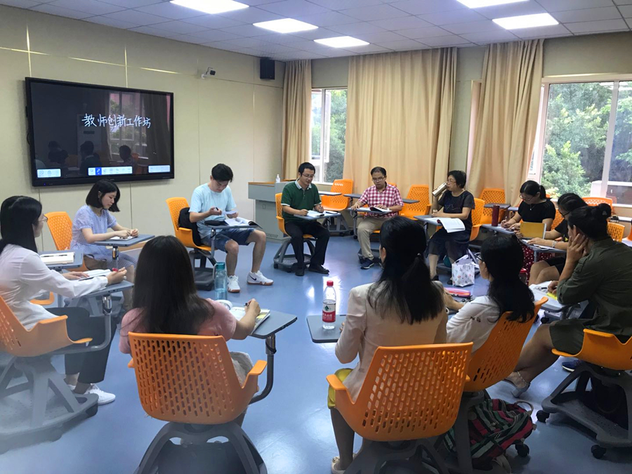 9月29日下午,万象城“教师创新工作坊 第5期”在第二教学楼301微格教学实训室举行,副院长袁鑫和大学英语一教研室部分教师参加了此次工作坊。此次工作坊一方面是万象城一项新教师培训活动,旨在通过对三位新教师的教学设计进行讨论和改进,提升新教师的教学能力;另一方面,2020级新生即将于10月10日开始上课,此次工作坊也是一次落实学校“六位一体”理念、做好新生大学英语教学工作的集体备课活动。在活动开始之前,我们制定了工作坊的流程和要求,并发给教研室所有教师。
