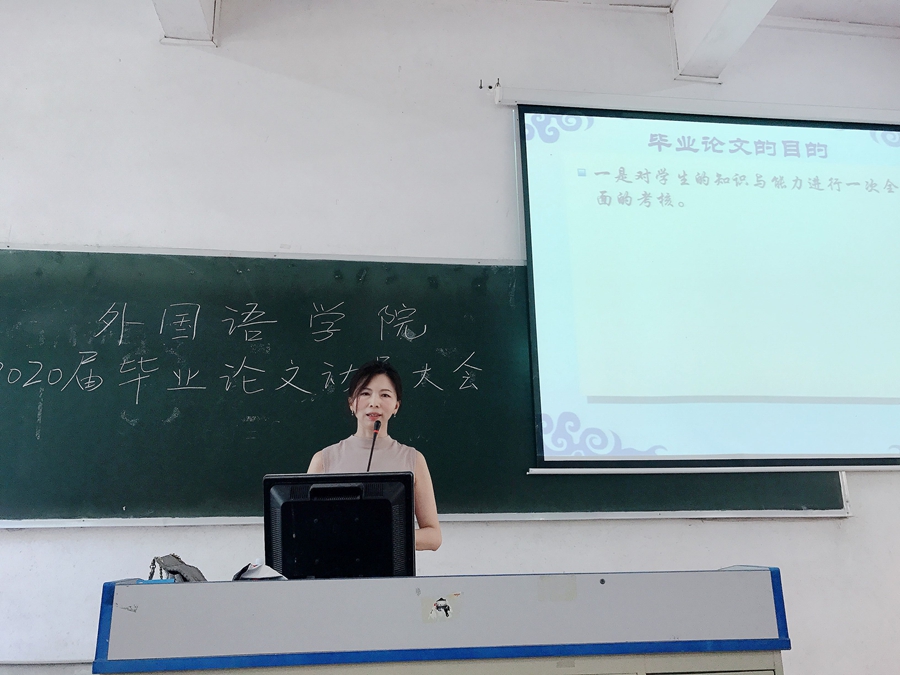 9月16日-9月19日,awc77万象城官网副院长袁鑫、日语专业系主任杨烨、英语系主任程瑜瑜、德语专业系主任周昳旸、商务英语系主任李望华先后分别为2020届日语、英语、德语、商务英语专业的毕业生举行了四场“毕业论文写作动员大会”。