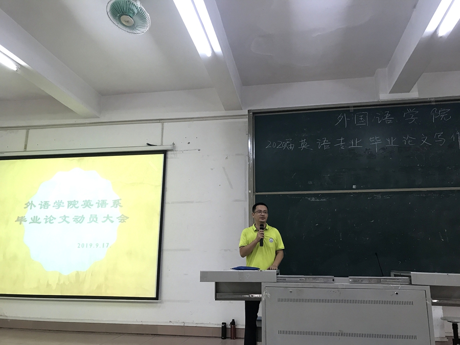 接下来,四位系主任分别有针对性对各个专业毕业论文写作做了专场讲座,公布了毕业论文工作安排的整体进程和时间,并详细地解说了毕业论文选题范围、写作格式规范和注意事项,以及答辩注意事项等事宜。