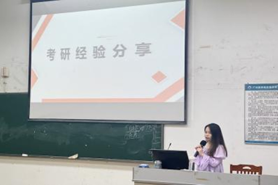 张佳婷校友分享了自身的备考经历,在选择院校、复习资料、备考经验等方面提供了许多考研干货,为备考学子指明了方向,提供了高效的备考经验。罗雨嘉校友着重为同学们分享了跨专业备考的学习方法和备考资料,激励着同学要坚定目标,勇于面对挫折和困难,一战成硕。詹慈欣校友主要为同学们讲解备考规划,他强调一定要提前做好备考计划,保持良好的心态,劳逸结合的备考,同时他以个人经历提醒同学们考研之路并非一帆风顺,要抵挡住诱惑,不言放弃。