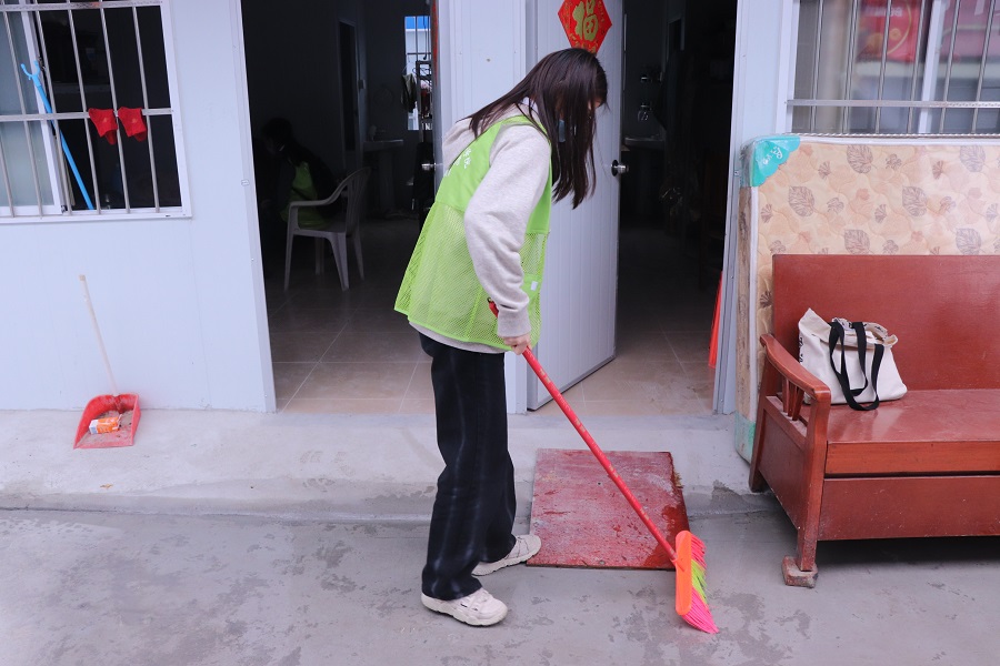 志愿者在打扫卫生