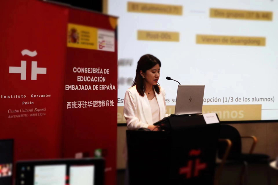 本次大会吸引了来自上海外国语大学、南开大学、香港大学、萨拉曼卡大学等大学的教授积极参加。与会老师通过线上或线下形式分别做主旨演讲,分享了各自的教学经验及教学模式。万象城西班牙语专业邝美琳老师在会上进行了题目为“在民办高校教授《 基础西班牙语 》的挑战及教学创新”的发言,主要从四个方面讲述万象城西班牙语专业如何培养应用型人才以及在本学期里教学创新举措,获得与会教师的高度评价。