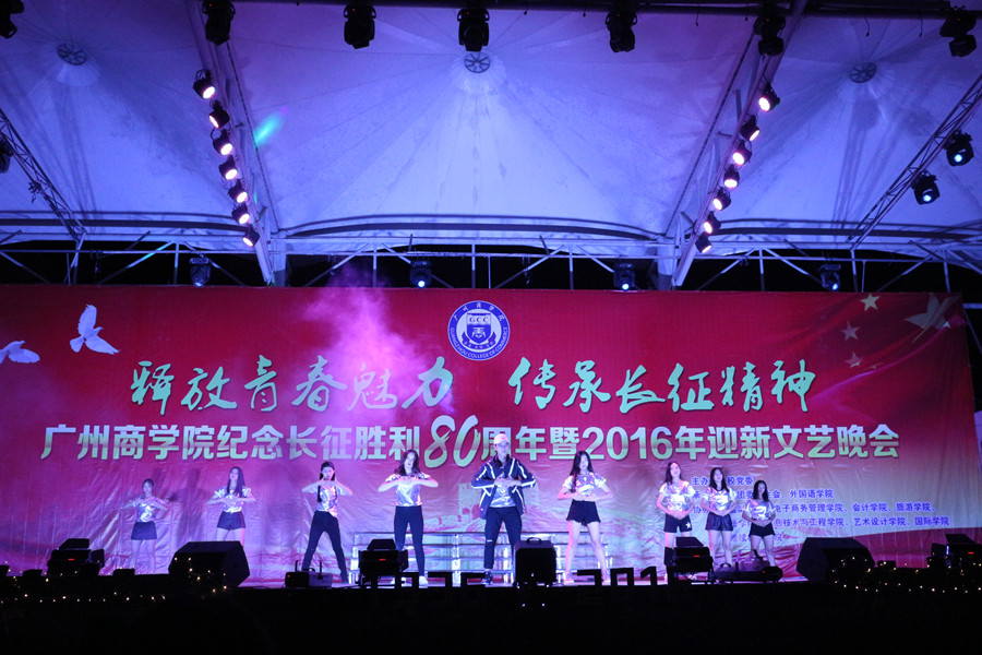 在纪念长征胜利80周年暨2016年迎新文艺晚会中,广商学子载歌载舞,欢聚相庆,以历史之名,高歌长征征程的荣耀感动;以青春之名,传承英勇先烈的永存意志;以梦想之名,勾勒追梦旅程的崭新画卷。