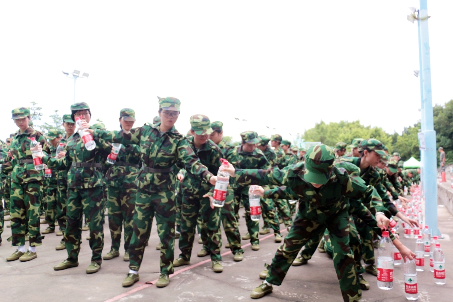 在休息的间隙,多才多艺的新生们抓住此机会展现自己的才华,欢歌笑语好不热闹,给原本枯燥的军训生活带来一丝丝色彩。训练场上飘扬的红旗,醒目的标语就像源源不断的流水,给新生们无穷的精神支持。