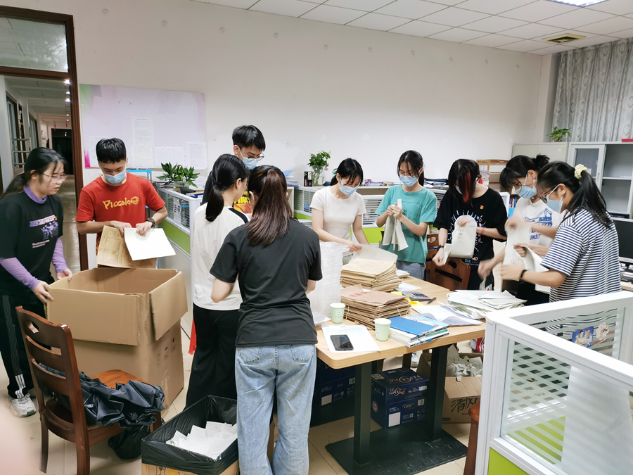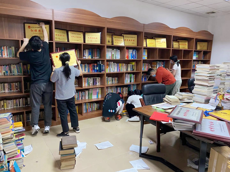 在学校的大力支持下,学院今年对办公条件进行升级改造,着重改善第二行政楼307党建活动室、308会议室、三楼宣传新格局、环境绿化等条件,为广大师生提供更加舒适的工作环境。18级学生党支部组织全体师生党员在课余时间前往改造区域进行主题党日志愿服务活动,党员们分工明确,从卫生清洁、资料转移、书柜整理、绿植摆放等均能做到井然有序,体现出了良好的战斗力。此次志愿服务也让党员同志看到学院为广大师生做出的努力,为生活在这样处处充满爱的集体而感到自豪。