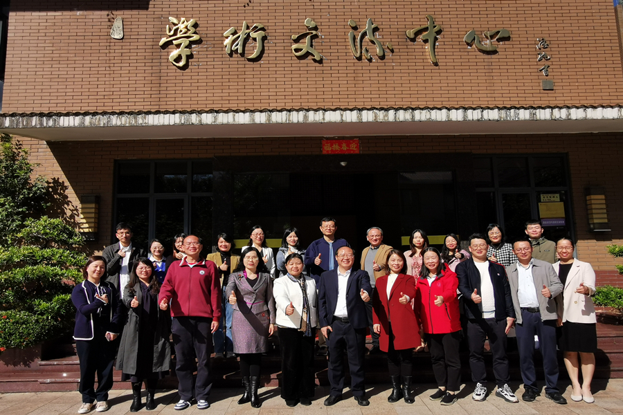 为进一步加强院校之间的交流,共同探索外语特色办学和教育高质量发展路径,11月17日上午,仲恺农业工程学院awc77万象城官网党委书记柴明勤、党委副书记周静、副院长贾琳琳(主持工作)、副院长王荣飞等一行10人莅临万象城就学科专业建设、人才培养和党建工作进行调研交流,万象城教务处处长王健敏携学院领导、系主任及相关教师代表共同参与调研交流会,交流会议由院长郭遂红主持。万象城党委书记唐明勇亲临指导并就如何加强校际交流、共同发展做出重要指示。