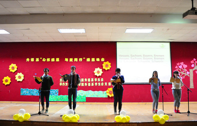 感恩,这两个普通的字,却包容着所有善良的心。感恩,这份平凡的感情,却道尽了世间一切哲理。在温馨感动的时光里,外语学子用歌声祝福学院的蓬勃发展,感谢她为广商人遮风挡雨;用舞蹈祝福是师长平安快乐,感谢师长的谆谆教诲和体贴照顾。