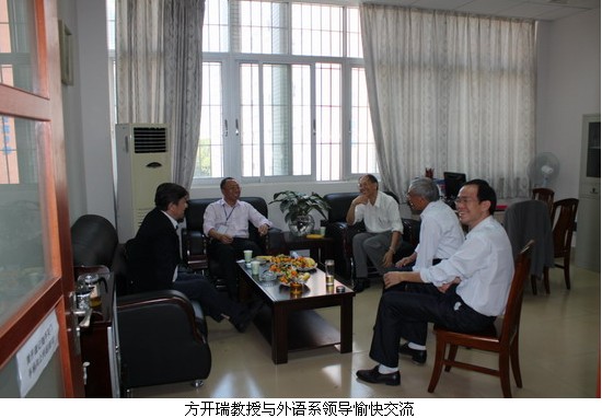 胡主任从外语系建设、办学定位、管理模式、学科建设、师资力量等方面向专家进行了汇报。在听取胡主任的汇报后,方教授就青年教师的培养和教师的科研力度等方面作了讲话。方教授指出,要多把青年教师送出去培训,回来要作报告,向全系的教师演示,以达到资源共享。此外,方教授还检查了部分英语和日语学生的毕业论文,对好的论文进行了充分的肯定,同时也对一些论文提出了宝贵的意见。