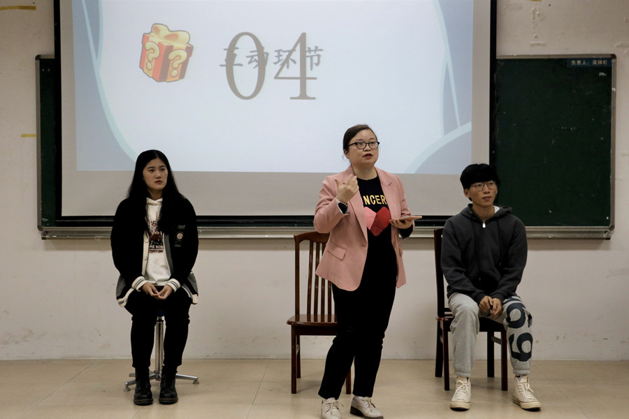 潘文晗老师(中间)、学生嘉宾张娜(左)和学生嘉宾詹慈欣(右)为同学们答疑