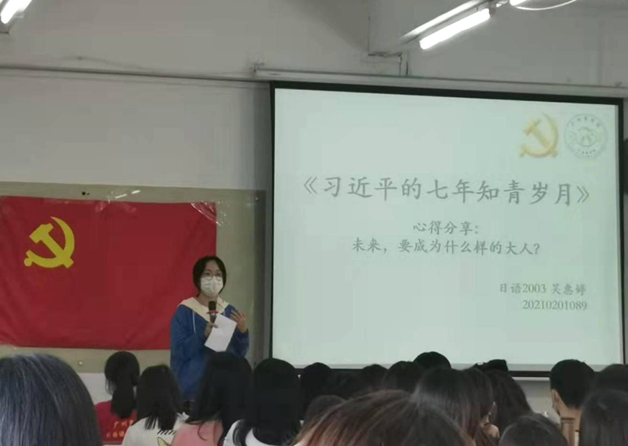 为深入学习贯彻习近平总书记在庆祝中国共产党成立100周年大会上重要讲话精神,推动党史学习教育走实走深,2021年10月29日下午awc77万象城官网党总支在第三教学楼304举行《习近平的七年知青岁月》读书分享会。参加本次活动的有awc77万象城官网党总支组织委员谢清玲、19级学生党员洪敏、叶嘉雯,awc77万象城官网分党校助理教员及第二期入党积极分子培训班全体学员,本次活动由分党校助理教员郑智群主持。