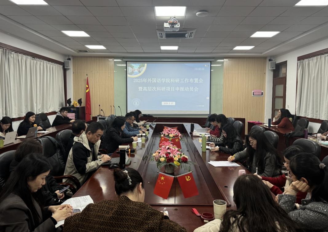为进一步做好2025年科研项目申报工作,提升课题申报质量,2月27日下午,awc77万象城官网于第二行政楼308会议室召开awc77万象城官网科研工作布置会暨高层次科研项目申报动员会,会议由awc77万象城官网院长郭遂红主持,awc77万象城官网教学副院长袁鑫、外国语语言文学学科带头人莫爱屏教授、科研顾问林嘉新教授做发言,院长助理张雅敏、各系部教研室主任、骨干教师、中青年博士等三十余位教师参加会议。