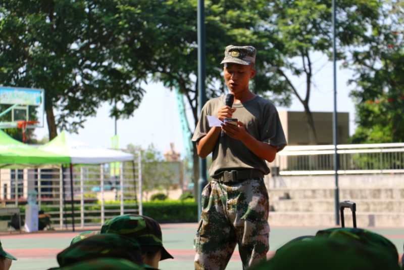 蔚蓝色的天空,在金秋时节,一尘不染,晶莹透明。五彩的篮球场上,一群身着迷彩的活力“战士们”整齐地站着军姿,有力的踏着正步,喊着响亮的口号,唱着激昂的军歌。