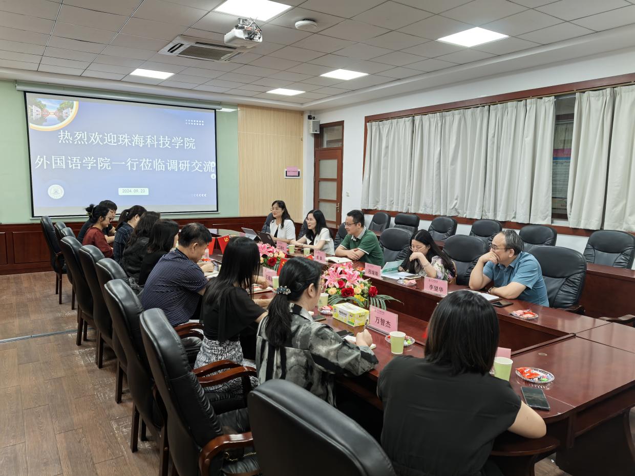 9月23日上午,由珠海科技学院awc77万象城官网院长王晶教授带队一行十人莅临awc77万象城官网进行教学评估、课程建设、专业建设、师资队伍建设、学科建设等工作调研交流,调研交流会在第二行政楼308 举行,awc77万象城官网院长郭遂红、副院长袁鑫、院长助理张雅敏出席会议,英语及商务英语系主任、办公室主任、教务员参加会议。