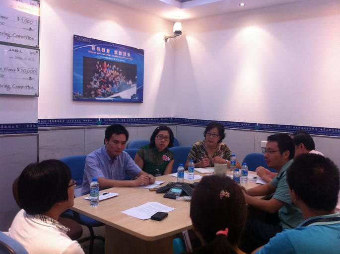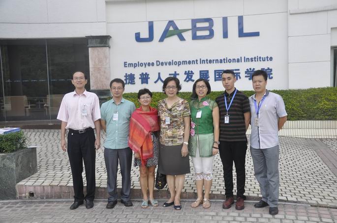 9月26日下午,教学处副处长左灵芝,外语系主任马蔚兰、副主任袁鑫、系党总支书记徐超等一行6人到捷普电子(广州)有限公司考察,并与该公司人力资源部高级经理冼幸贤、人力资源部招聘经理方海燕就进一步拓展和深化双方交流合作展开洽谈。