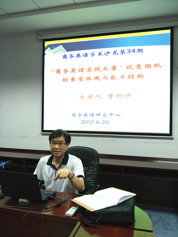6月13日下午,第三届“外研社杯”全国商务英语实践大赛校内决赛在万象城举行,这次的沙龙是针对这次比赛学生表现的一个反馈。曾利沙教授作为大赛的特邀嘉宾,对10支参赛队伍作了详细点评,他肯定了参赛的10支队伍的表现,同时也对参赛队伍的报告特色、创新思维、PPT排版方面提出了宝贵的意见。他在讨论中指出,在比赛十分钟的全英展示过程中,应具备以下几个特点:案例经典化、商业导向化、要点概括化、结构优选化、理念突出化、内容知识化、语言隽语化、文字图像生动化、版面设计美术化。而在选手的个人风采展示方面,曾教授则指出,选手在展示过程中,要微笑有礼、仪态大方、面向观众、语流适中,面对评委的提问时回答机智幽默。