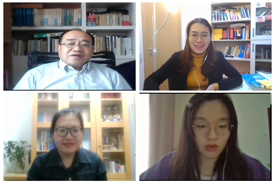 本次交流会邀请了李晶、李卓华、李海燕、石佳四名老师发言,每个老师从不同角度,对自己线上教学的做法和经验进行了分享。李卓华老师以“大学英语”课程为例,按照“以学定教、教学相长”的理念,介绍她如何利用多平台精细化管理,来实现网上翻转课堂,引导学生提高自主学习能力和思考能力。李海燕老师则把“英语听力”课程的教学模式总结为“一个项目、两个老师、三个结合、四个环节、多种互动”,以项目为引导、话题为引领,结合线上讨论、线下总结的方式,发挥老师的指导作用,引导学生在线提高听力能力。石佳老师以“如何保持学生在网课学习中的动力”为主题,分享了她如何筛选稳定的网络教学平台,再到通过课前预习、课上迷你测试+讲评、课后互动答疑这“三部曲”保持学生的学生在线学习热情的做法。李晶教授分享的主题是“停课不停学——精准施策,科学应对”,作为老教师,他介绍了如何针对没有教材、技术不熟练等问题,积极学习上课软件,发挥学术特长,以问题为引导,通过课前、课中和课后的问题提出和回答与引申等多种互动方法,提升在线学习效率。会议最后,袁鑫副院长对本次交流会进行了总结。四位老师的精彩分享,也得到了与会老师的充分肯定和一致好评。