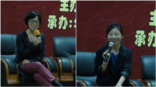 嘉宾发言(左为学院党委张秋艳副书记、右为外语系德法教研室主任周昳旸)