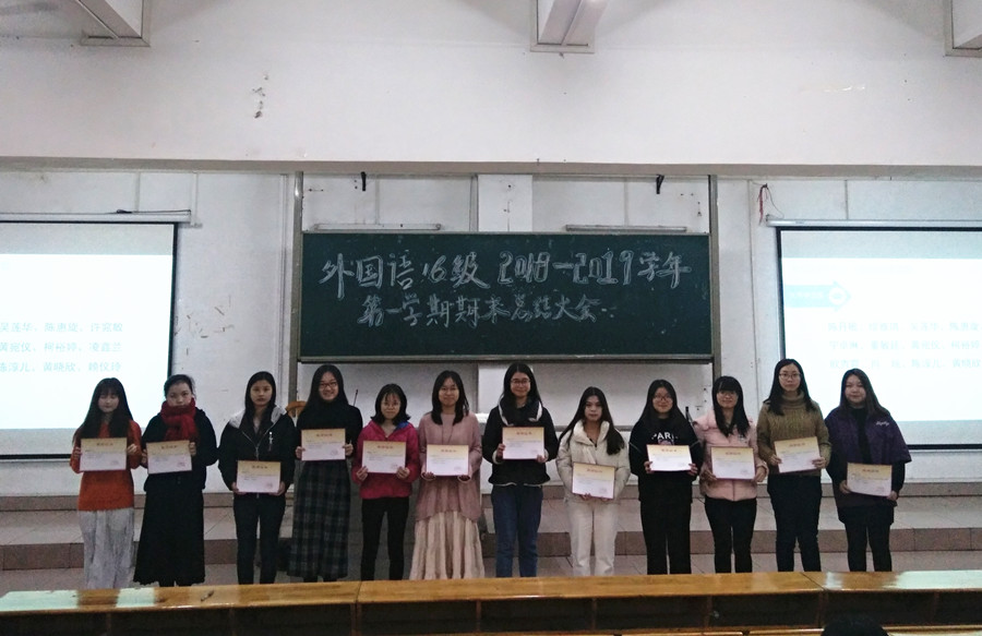 活动中,辅导员根据各专业的实际情况从专业学习、学术竞赛、考级考证和社会实践等方面做了详细的工作总结,其中,黄玉亭认为,商务英语专业的同学学习生活上水平、专业技能上台阶和就业准备上日程;郑灿玲认为,日语专业的同学应提升参与社会实践的主动能动性;戴玮认为,英语德语专业的同学应学会平衡好学业与学生工作之间的关系,不断提升自身综合素质。紧接着,活动对获得学校奖学金和部分获得省级比赛的同学进行了表彰,并鼓励同学们向优秀看齐,向先进学习。接着,辅导员们强调了期末考试考风考纪的严肃性,鼓励同学们认真备考和诚信参考;此外,辅导员还开展了假期安全教育和法制教育,要求同学们假期中提升防火防盗、防诈骗、防传意识,加大疾病预防知识普及力度,自觉遵纪守法。