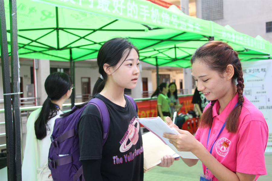 随后学校黄弢校长、党委吕泉荣书记、欧洁梅副校长、刘根正副校长、康大教育园区工会刘炳荣主席、后勤管理委员会黄耀明主任等亲临迎新第一现场了解学院迎新工作进展情况,对迎新现场布置给予肯定,尤其是对现场的合影留念墙与新生大礼包给予赞赏。值得一提的是awc77万象城官网马蔚兰院长、党总支徐超书记以及各年级辅导员也亲自到一线指导,确保迎新工作圆满完成。