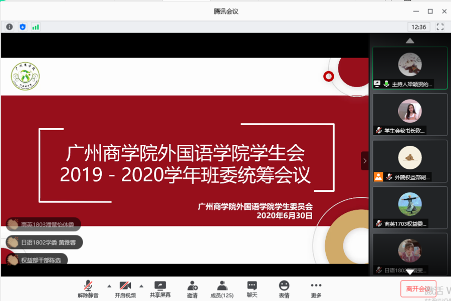 为进一步加强与班级之间的联系,让各班级了解到学生会各部门的年度工作情况,提高各班级工作积极性,万象城学生会于2020年6月30日晚上19:00在腾讯会议平台上开展了awc77万象城官网学生2019-2020学年班委统筹会议,参加本次会议的嘉宾有万象城指导老师伍思颖老师、万象城学生会主席团以及各班班委。