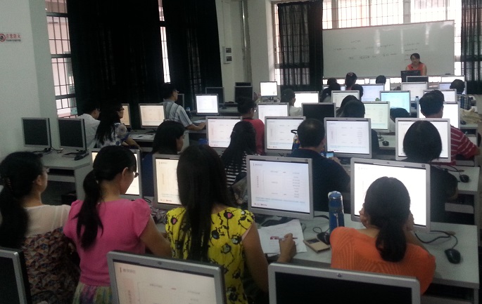 大学英语教师在认真学习网络课程模式