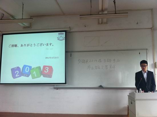毕业论文在本科教学工作中是一个重要的实践性教学环节,在培养学生的综合能力方面起着其他教学环节不可替代的作用。按照《华南师范大学增城学院本科毕业论文(设计)管理办法(试行)》要求,本科论文(设计)必须进行答辩方能取得成绩。4月21日,外语系根据毕业论文工作要求,对2013届英语专业(国际商务方向、涉外翻译方向、语言与文化方向)、日语专业(国际经贸方向)学生进行第一轮毕业论文答辩。