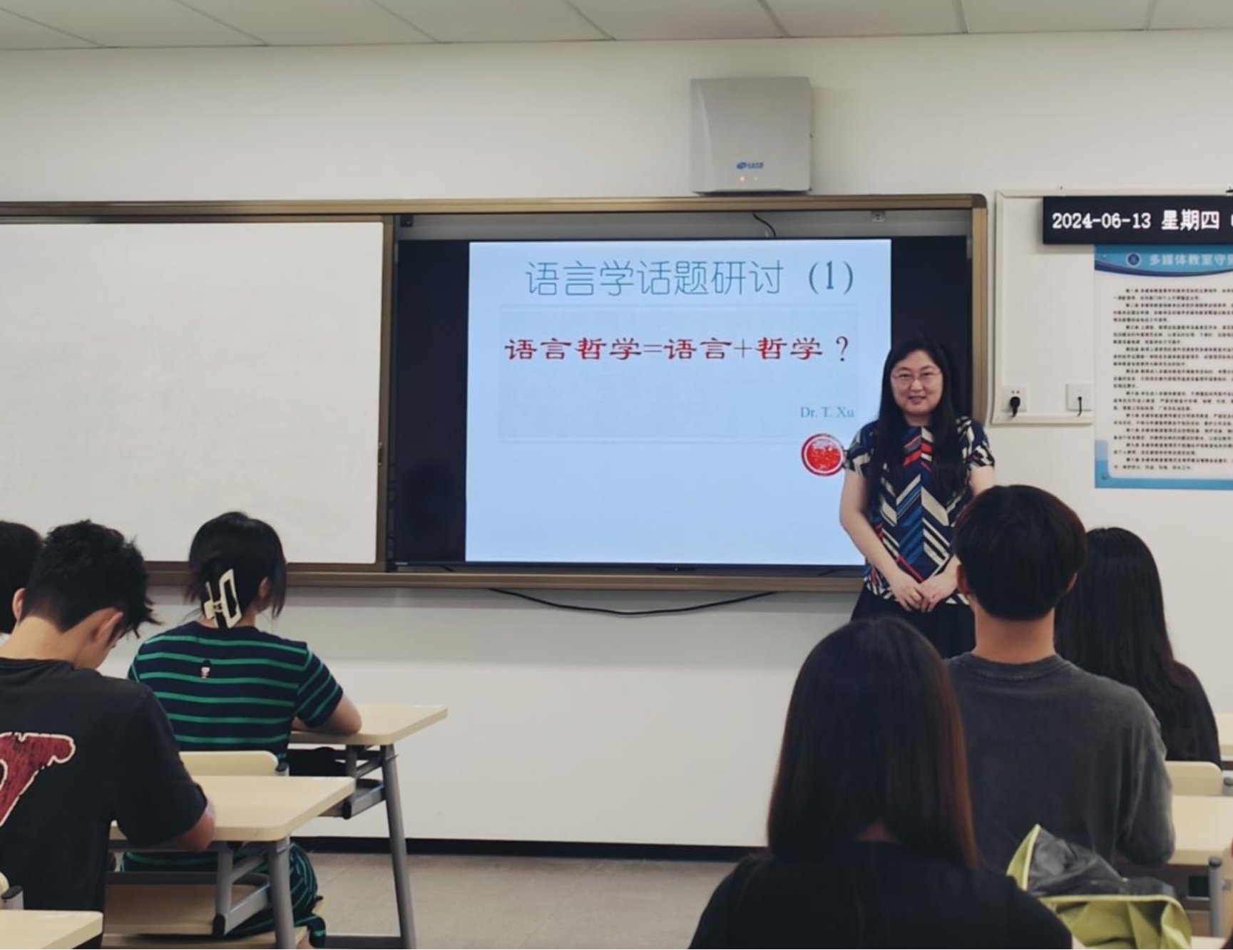 本次讲座由徐田华博士担任主讲,她结合语言学和哲学领域,探讨了语言哲学在科技转向下的发展趋势和挑战。与会老师们积极参与,热烈讨论,现场气氛活跃。徐博士提及自己对葛兰西的语言哲学思想的研究历程,并强调多方面的学术启发和讨论促使了她对这一主题的深入探究。以此来抛砖引玉,鼓励我学院的老师走上科研的道路。
