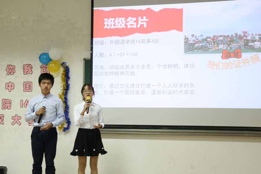 10月以来,awc77万象城官网2016级21个班级全部参加了初赛PPT评选。各班班委认真组织,PPT作品精彩纷呈,从班级文化建设、班级学风建设和班级荣誉等方向展示了班级魅力。经过近一个月的班级风采PPT评选,具体排名,共选出9个班级进入本场现场展示比赛。比赛中,参赛班级通过PPT展示、节目表演、视频展示等多种方式展示班级文化和集体风采。英语5班在风采展示中把情景演绎、英文诗歌改编朗诵融合在班级文化和班级建设,小品情景和班级日常紧紧相扣、英文诗歌改编和学习生活密切联系,节目编排十分用心;商务英语6班通过PPT展示班级日常、学习特色、文化建设成果,一首班级大合唱《我的梦&Dream it possible》和一段暖心班级风采视频充分展示了幸福班级磁场的魅力;商务英语4班以班歌《Fight Song》合唱赢得了观众的阵阵掌声;日语2班以内容丰富的PPT、气势有范的主讲人和耳熟能详的《天空之城》日语大合唱展示了班级的专业特色,给观众们留下了深刻的印象。经过PPT展示和才艺比拼,最终由日语2班摘得本次比赛的桂冠。 比赛过后,徐超上台为活动作总结发言。他认为,形式多样的年级活动是挖掘和宣传优秀班级和先进个人的平台,也是展示各班级建设理念、集体文化、班级活动和活动影响的机会。同时,他也指出本次活动存在的不足,并提供了改进的建议,并祝愿2016级各班班级建设越来越出色。