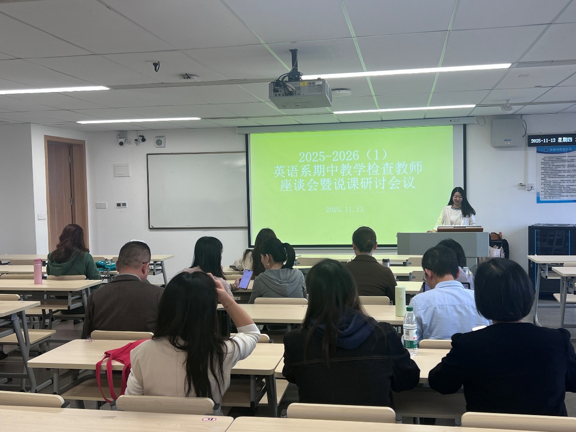 11月13日,英语系在第八教学楼517室召开期中教学检查教师座谈会暨说课研讨会议,系内全体教师参会,围绕学委座谈反馈、问卷满意度调查、期末出卷工作与新教师说课展示议题展开深度研讨。