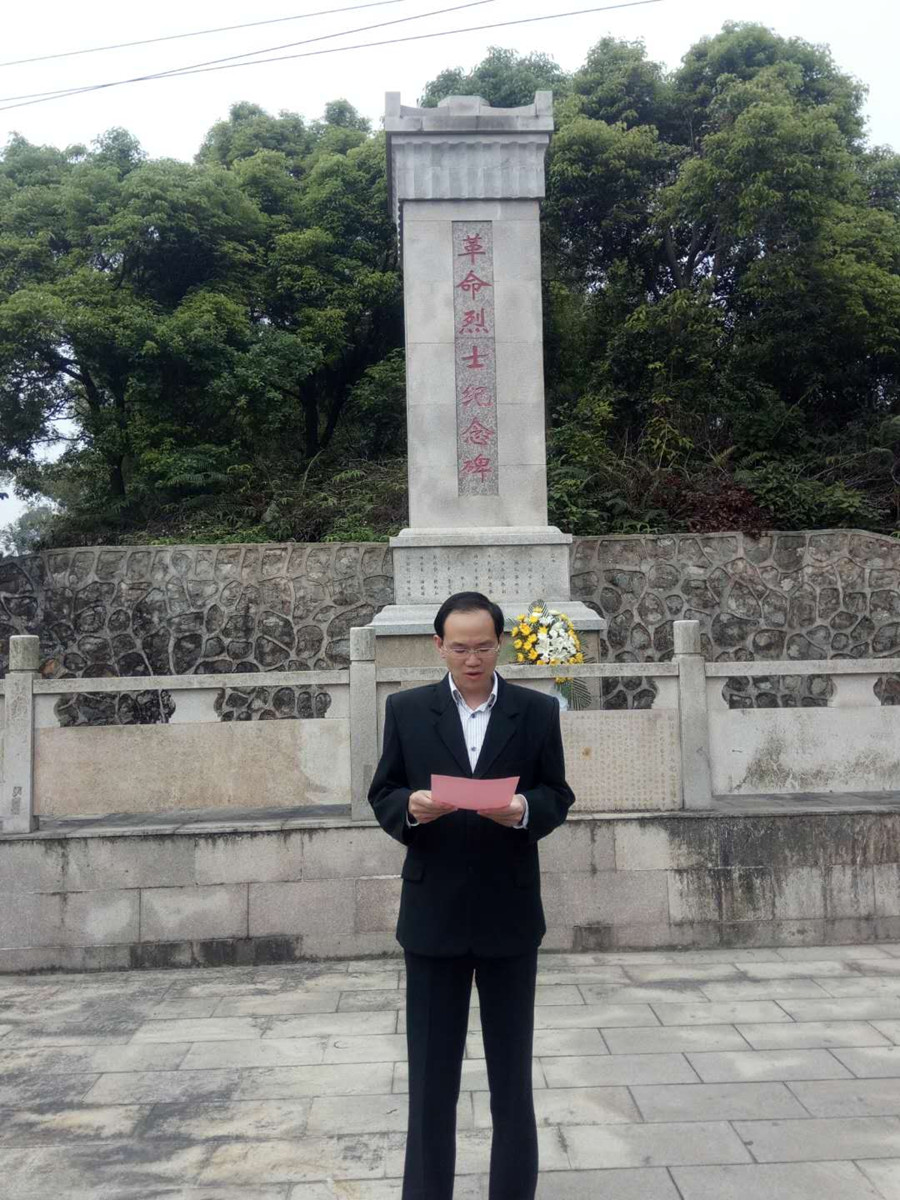扫墓活动伊始,由2名学生干部为革命先烈敬献花圈,所有志愿者逐一走至烈士墓碑前为革命先烈敬献小白花。接着徐超书记做了总结讲话。徐书记指出,我们祭奠革命烈士就是要就是要追忆他们的丰功伟绩,缅怀他们的崇高精神,学习他们对人民的无限赤胆忠诚,他号召所有志愿者要牢记革命先烈为中华民族解放事业做出的牺牲与贡献,继承革命先烈忠于党忠于人民的崇高品质,勤奋学习,勇于创新,坚持练就过硬的本领,为实现中华民族伟大复兴的中国梦做出自己的贡献。