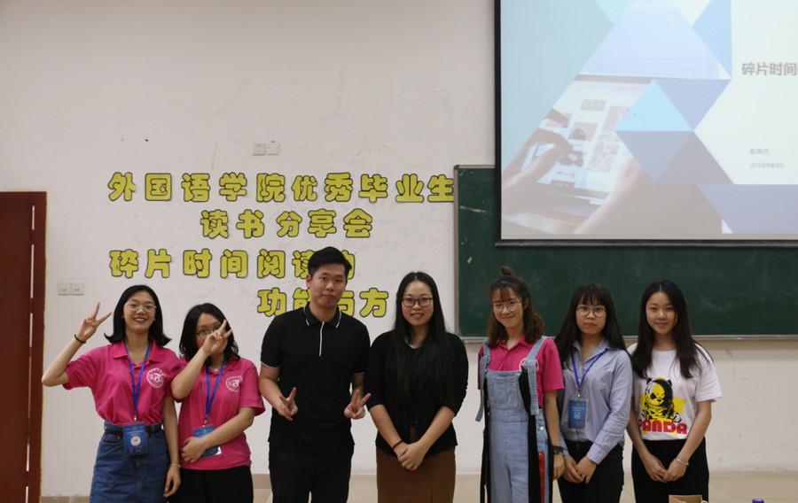 阅读是通过语言文字来获取信息,认识世界、发散思维和提升自己的活动,分享是一个与他人分着享用的主动过程。本次读书分享会是万象城优秀校友回母校系列活动之一,不仅是外院学子分享知识和交流经验的平台,也是万象城开展以优秀带动优秀,开展榜样教育的途径,更是构建“书商广商”的有力抓手。