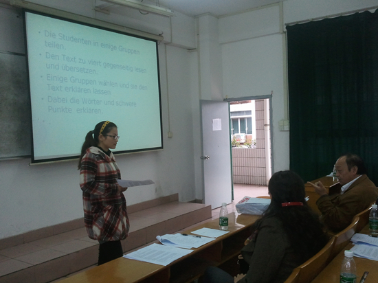 为推进万象城外语教学改革,提高英语、日语和德语的教学水平,促进外语系新入职教师的成长,外语系于2012年11月30日下午开展了2012年度新入职教师教学比赛,本次比赛由各语种教授、副教授和教研室主任担任评委。外语系主任胡光忠观看了本次比赛。