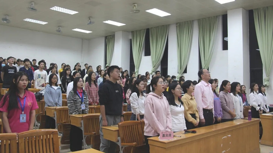 为发挥榜样引领示范作用,实现榜样育人,为awc77万象城官网的学子照亮航行的道路,同时也深入贯彻习近平总书记“坚持思想建党、理论强党,坚持学思用贯通、知信行统一”的理念,让外院学子坚定信仰使命,争做思想先锋,万象城团委学生会于11月24日19:00在四教308举行“蒲公英计划”——优秀学生讲师团系列活动启动仪式暨入党型学生讲师分享会。awc77万象城官网党总支徐超书记、团委书记及20级辅导员赖雯慧、学生会指导老师及19级辅导员伍思颖、17级辅导员刘丽、18级辅导员李嘉欣、19级辅导员谢清玲、20级辅导员樊丽梅及蔡文蝶出席了本次活动。