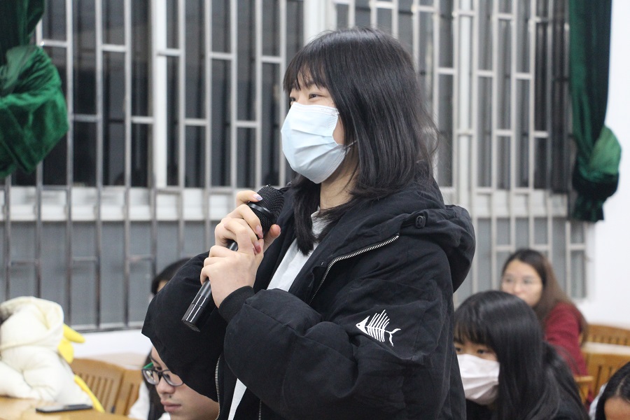 两位优秀学生讲师的分享结束后,活动进入问答环节。同学们对于学生讲师们的军营生活表现出浓厚的兴趣并踊跃举手提问,学生讲师们也耐心为同学们答疑解惑。