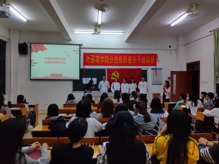 开班前,学院分党校新任助理教员上台与入党积极分子见面,进行聘任仪式。刘丽详细介绍了本次入党积极分子学习班的课程要求,主要包括理论课程、红色书目阅读、《习近平谈治国理政》第三卷学习等活动,还严格说明学习班的纪律要求,希望各位积极分子能够加强理论学习,提升总结反思能力,坚定入党初心。