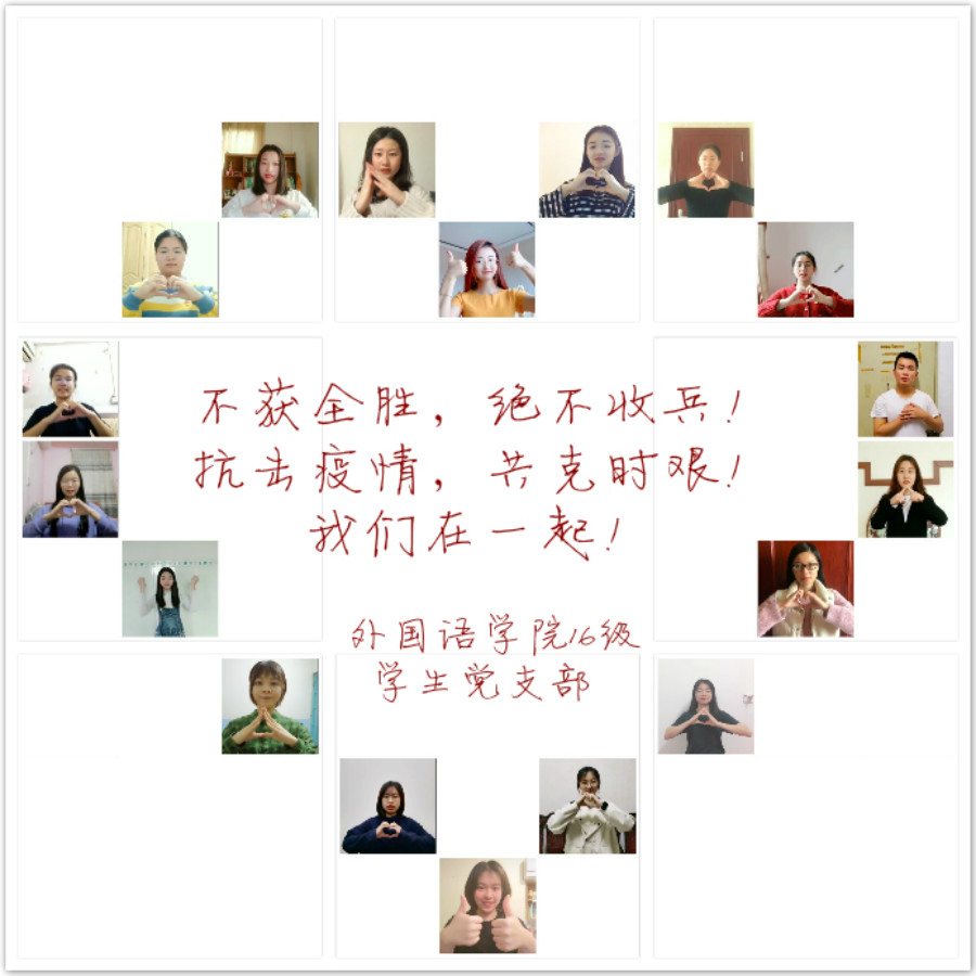 awc77万象城官网16级学生党支部选定了目前较热门的两支手指舞,以《听我说谢谢你》表达了对不惧风雨、勇担使命、坚守在“疫”线“战士”们的感谢和敬意;以《不放弃》表明了抗击疫情“不获全胜,绝不收兵”的坚强决心。活动启动后,53位党员同志在线下如火如荼地展开了手指舞训练活动。短短几天,各位党员同志克服困难、积极参与、认真录制。经过后期剪辑制作,手指舞活动成果最终以小视频的方式进行展示,并在朋友圈里获得师生的纷纷点赞。