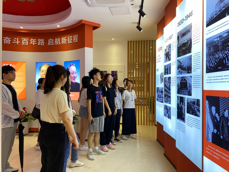 党支部书记谢清玲首先对“四史”知识进行了阐述,希望19级的发展对象、积极分子和青年团员要了解我们党和国家事业的来龙去脉,汲取我们党和国家的历史经验,正确了解党和国家历史上的重大事件和重要人物,从而能更好地发挥先锋模范作用,带领宿舍成员、班级同学加入本次学习“四史”活动中来。随后,谢清玲组织发展对象、入党积极分子们、青年团员在青思苑开展学习“四史”教育活动。一段段凝结血泪的文字,一幅幅珍贵的图片,折射着一个政党光荣的历史,记载着一个民族辉煌的瞬间,青思苑呈现给我们的不仅是震撼人心的红色故事和红色人物,更是中国共产党波澜壮阔的百年征程。