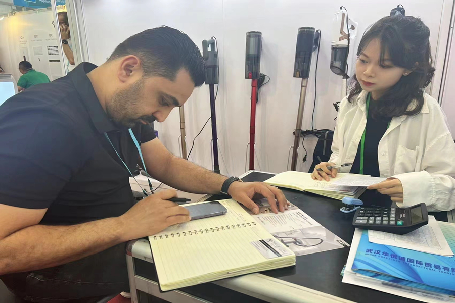 外院学子协助展商洽谈